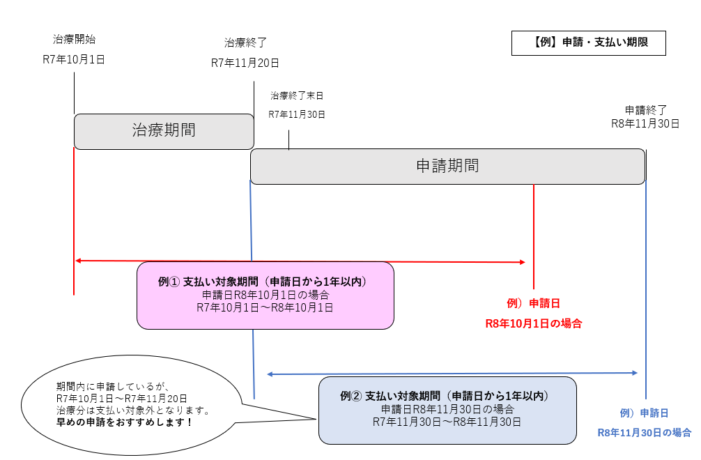 申請期限内であっても、治療初期(例:令和7年11月29日以前)