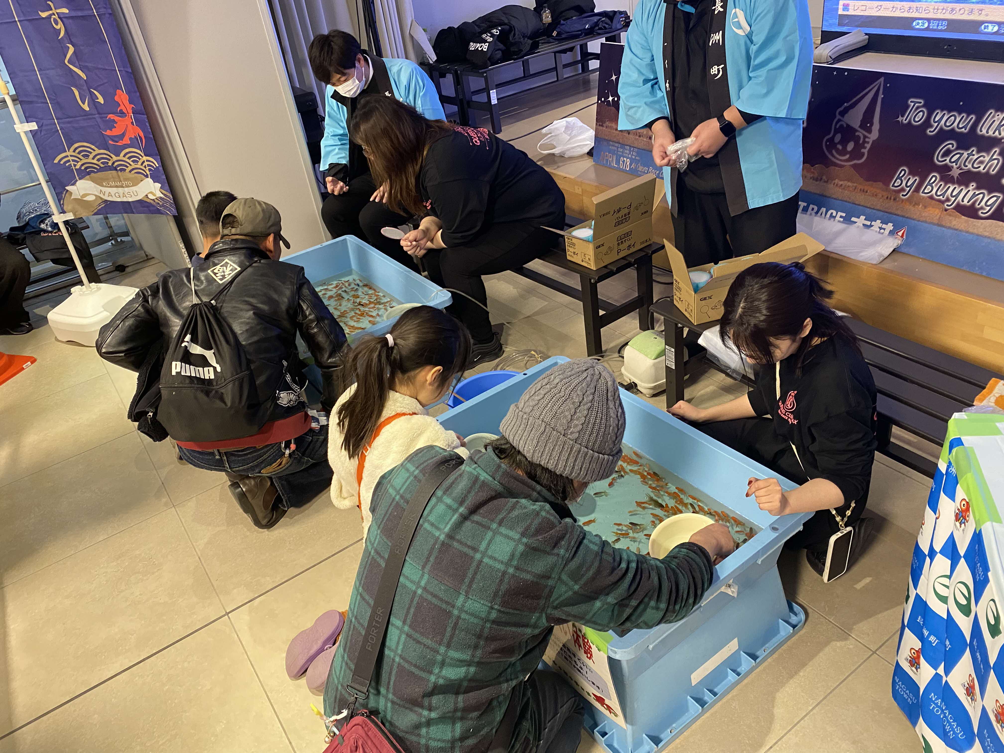 12月13日(土)、長崎県大村市のボートレース大村で長洲町PRのため、金魚すくいを実施しました。